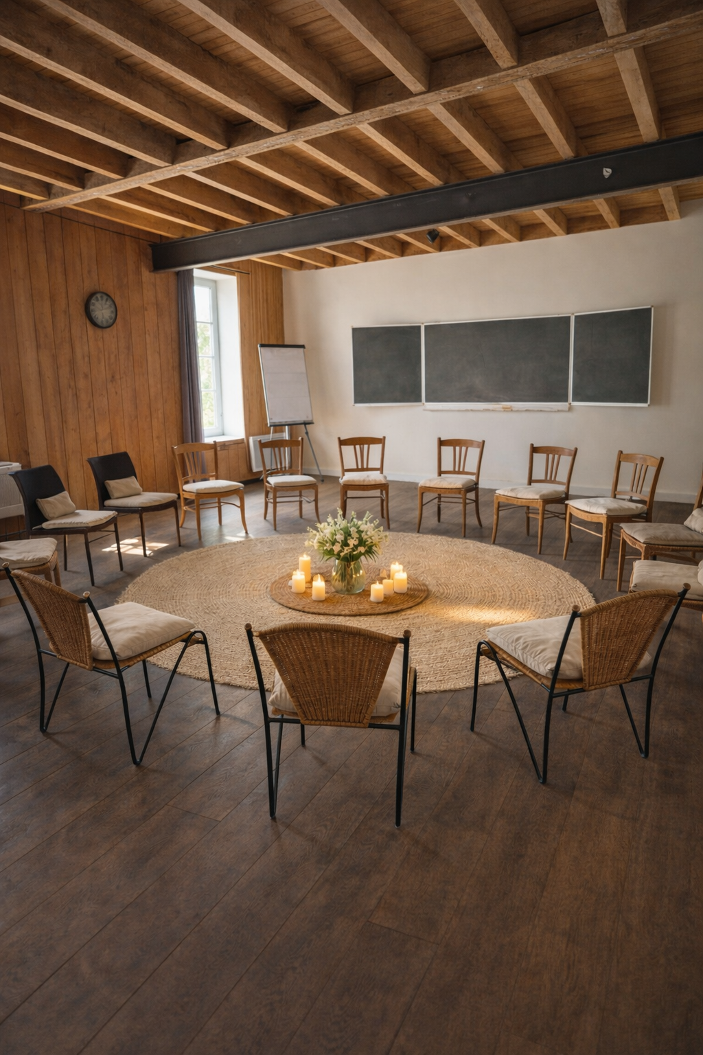 De school beschikt over twee sfeervolle ruimtes: een professionele vergaderzaal voor focus en productiviteit, en een comfortabele relaxruimte waar jullie kunnen lunchen, ontspannen of informeel verder praten.